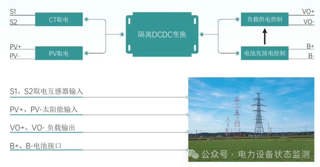根據(jù)高壓架空線安裝環(huán)境,設(shè)計了寬范圍太陽能PV取電輸入接口,內(nèi)置MPPT太陽能最大效率控制,可直接接入太陽能光伏板。無論是CT輸入還是太陽能PV輸入均采用隔離型DCDC變換進(jìn)行原副端隔離,對于電網(wǎng)浪涌和雷擊光伏板的惡劣工況,均能保障電源模塊和負(fù)載電路的安全。
